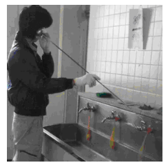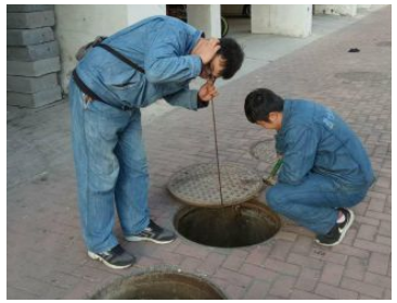 6.2.6、如果找到漏水疑点,为慎重起见不要立刻就判定该点就是漏点的位置,最好在该处附近对地面打几个深孔,再将听音杆插进去诊听,比较各点的声音大小,这样的定点更为精准。有时候管道泄漏的水还会直接从孔里冲出来,如果这样,比较一下水柱的大小来确定漏点的位置。