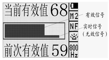 ■在特殊情况下,例如检漏必须要在吵杂的白天紧急进行,而这种情况耳机是根本无法监听到地下漏水声音,而利用模式(M2或M3)中的有效值显示可解决这个难题。