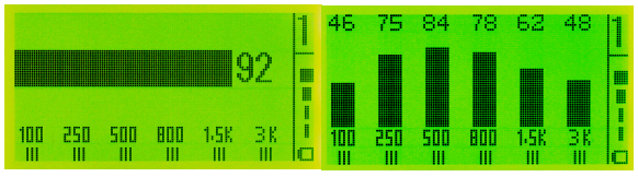 ■两种工作模式:横向模式(单条柱状显示)或纵向模式(六条柱状显示 ),七个滤波频段。