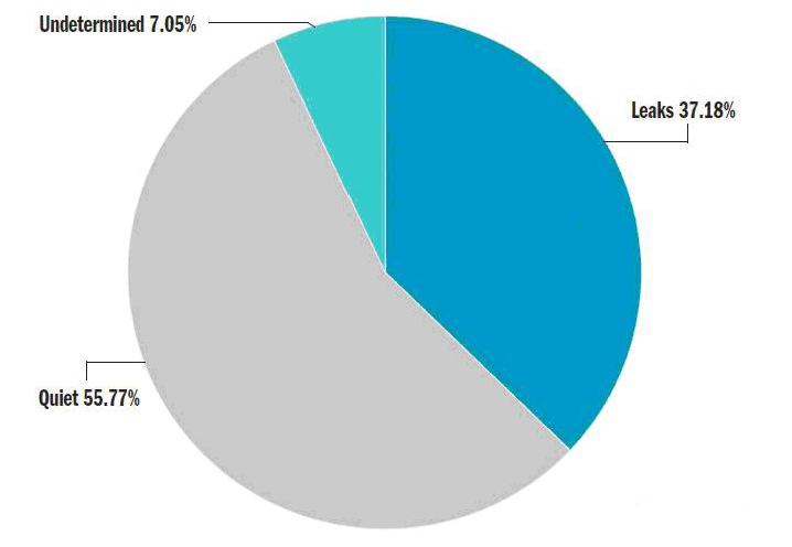 CAW工作人员基于这份报告,采用了传统的听音探漏设备检查了每个可能的区域。他们发现37.18%(58个区域)确实存在真实漏点(图一),另有87处没有发现漏水,还有11处无法确认是否有漏水现象(需要进一步检测确认)。