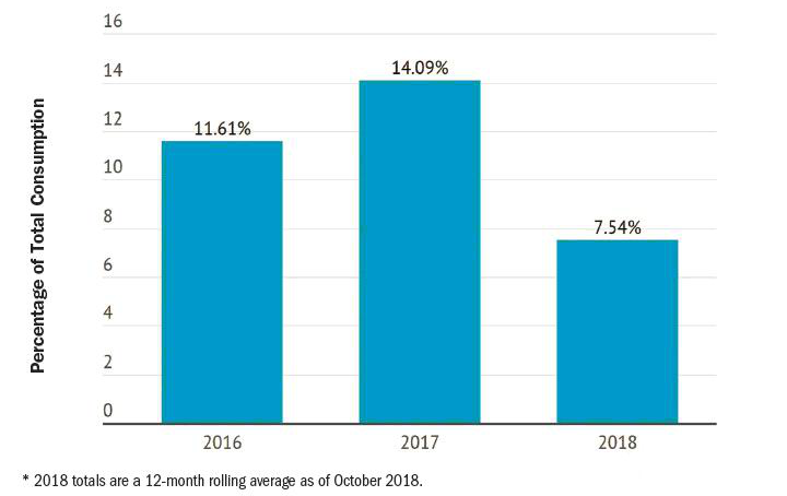 在使用卫星影像探漏技术之前,CAW的探漏部门通常会根据客户的反馈(明漏或者供水压力不够)或者管道部门的建议(哪里可能有漏水)进行漏水调查。而在2018年由于采用了卫星探漏技术,12个月平均的供水漏失率从2017年的14%高点,下降了超过6%,在2018年12月的漏失率为7.5%。